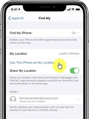 Alternatively, you can open the Find My app, go to the Me tab in the bottom right corner, and then turn off the Share My Location option.