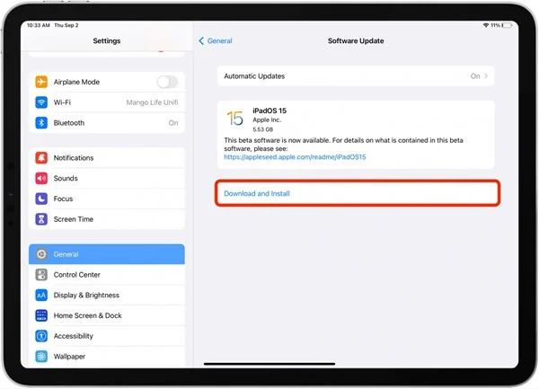 If your iPad is running an outdated version of iPadOS, the device may have problem to connect to your Wi-Fi network. In such case, you'd better update your iPad by navigating to Settings > General > Software Update.