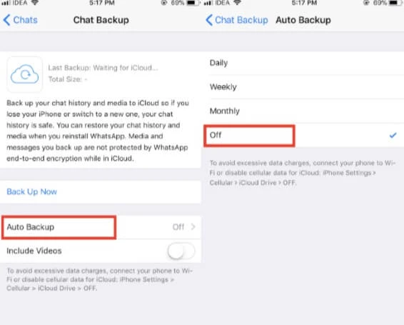 This part will talk about iPhone. There are 3 different ways in which you can stop WhatsApp backup on your iPhone: