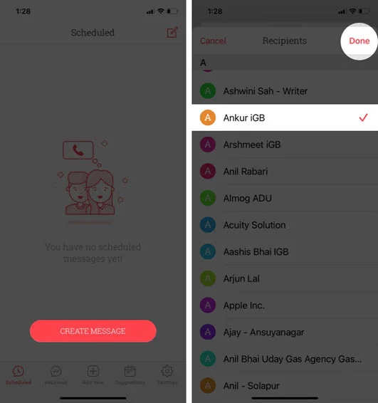 The Scheduled App is available on App Store for iOS devices, and it enables you to schedule your text messages in two ways: