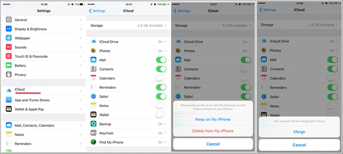 Another free way you can try to restore the contacts back on to your iPhone is to sync all contacts from iCloud to the device. You can directly go to Settings and turn the contacts off and back on again. Follow these simple steps to do it: